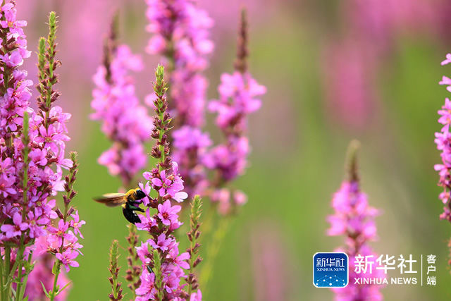 ↑6月28日在武清区黄庄湿地公园拍摄的千屈菜花。(新华视觉 董鑫 摄)